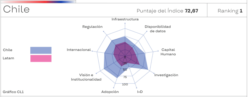 Chile está posicionado como el país con mejores condiciones para el desarrollo de la Inteligencia Artificial (IA), por sobre países como Brasil, quien está en segundo lugar y Uruguay, en tercer lugar, este análisis fue expuesto en marco del primer Índice Latinoamericano de Inteligencia Artificial (ILIA) presentado por la Comisión Económica para América Latina y el Caribe (CEPAL).